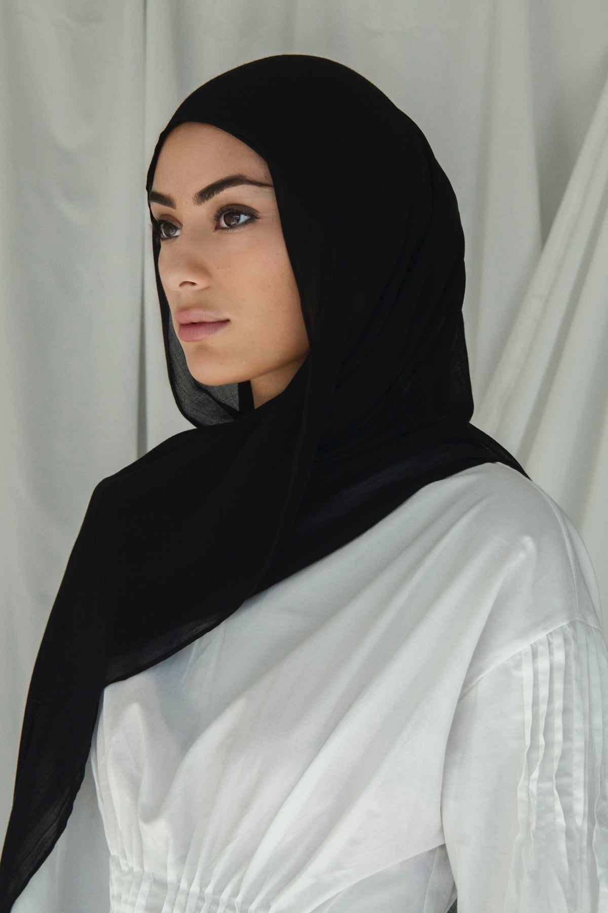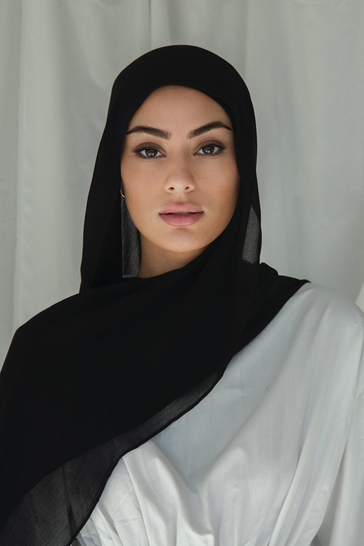 Introducing our buttery feel, light weight modal hijab in black color an essential color that every girl need to add to her hijabs collection.