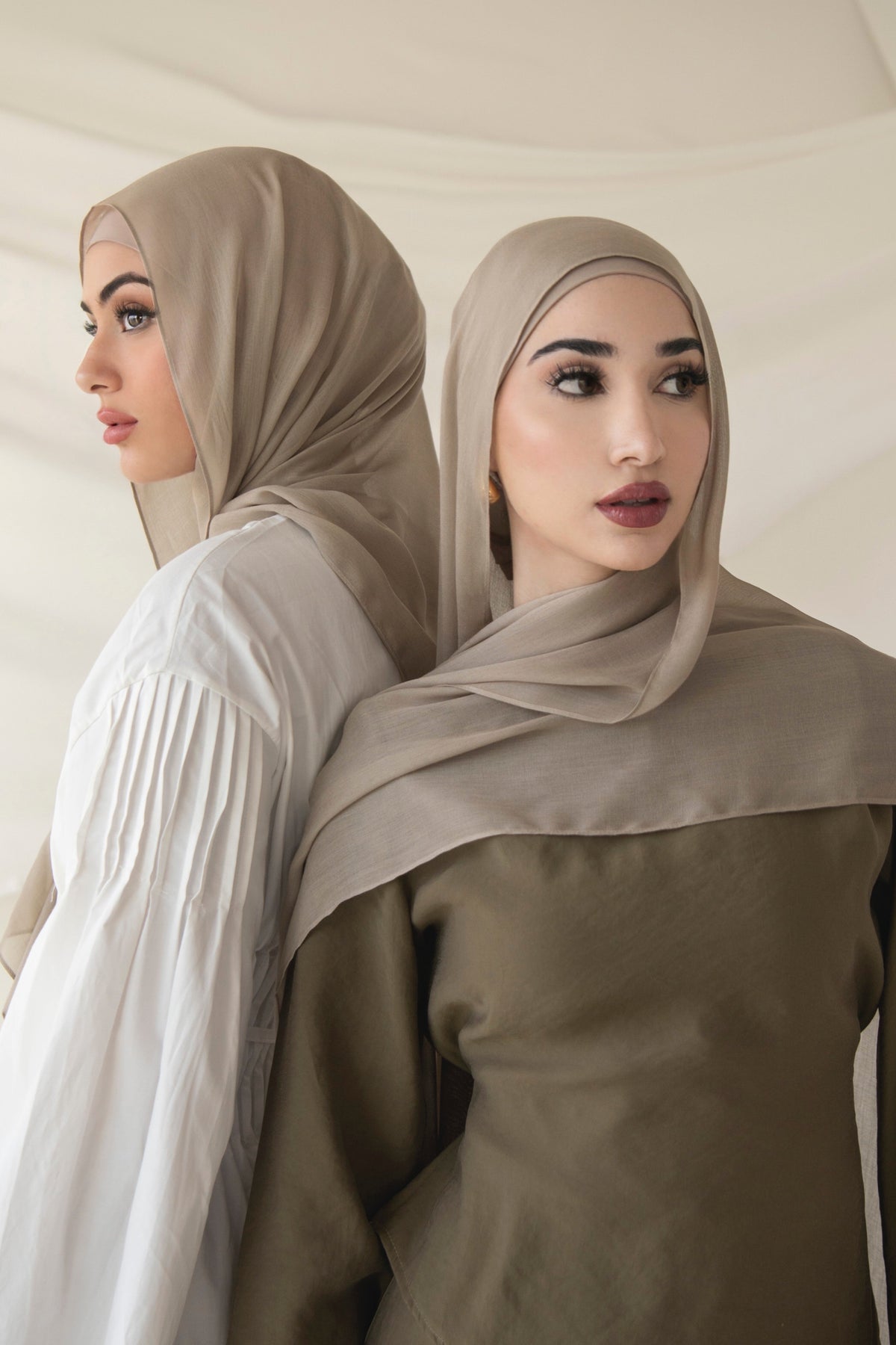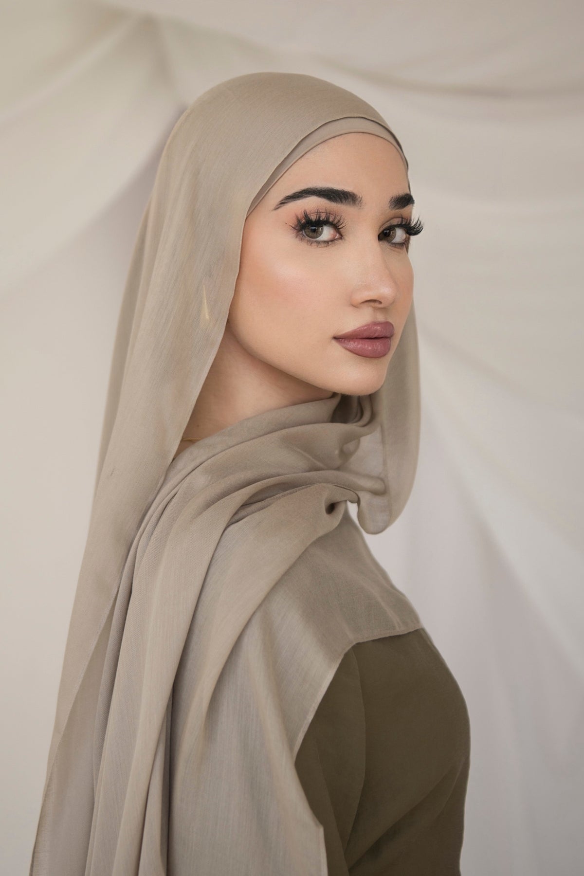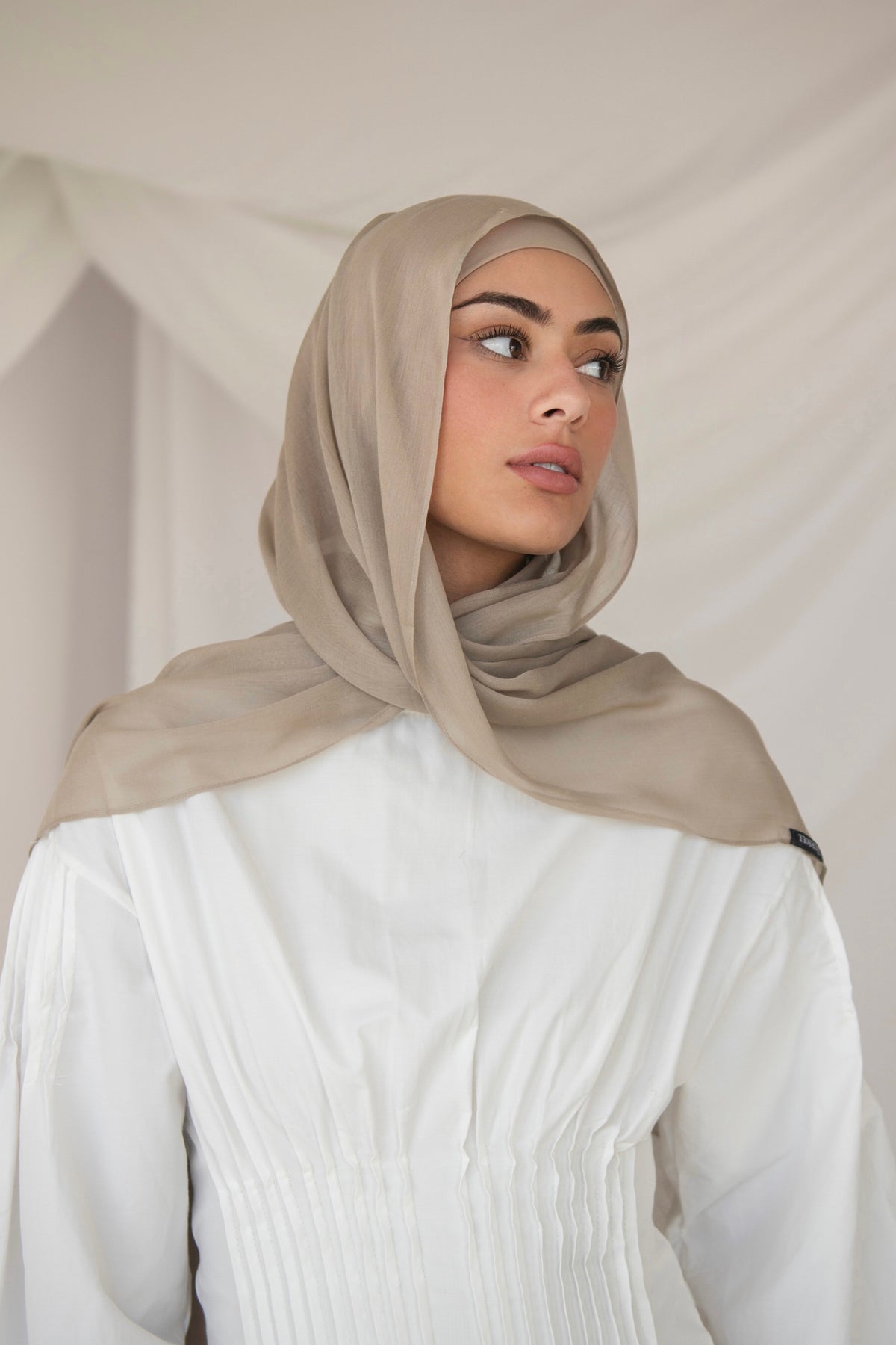 Introducing our buttery feel, light weight modal hijab in latte shade an essential color that every girl need to add to her hijabs collection، inspired by the warmth of a morning latte, this soft beige-brown tone brings calm and effortless elegance to any look. Its neutral warmth makes it perfect for both everyday wear and classic occasions.