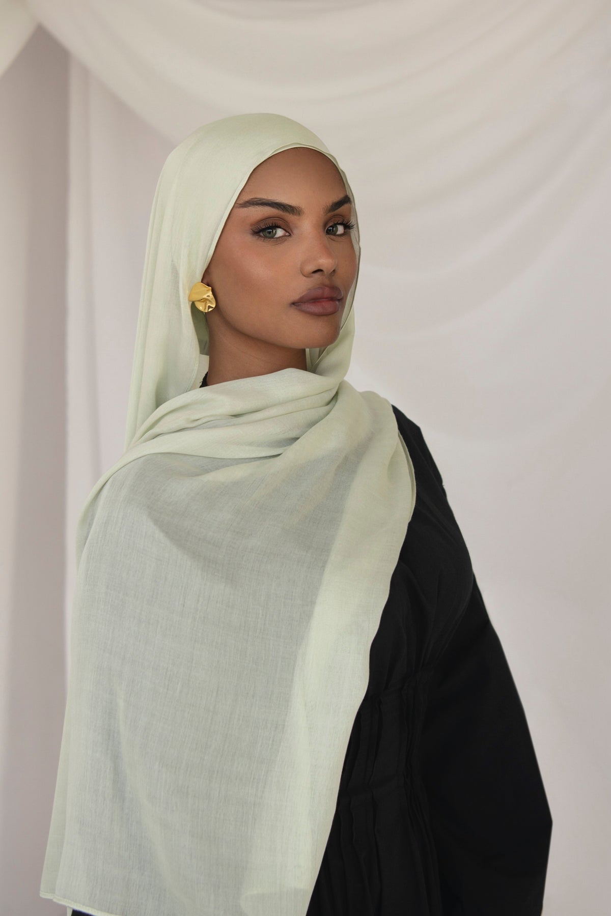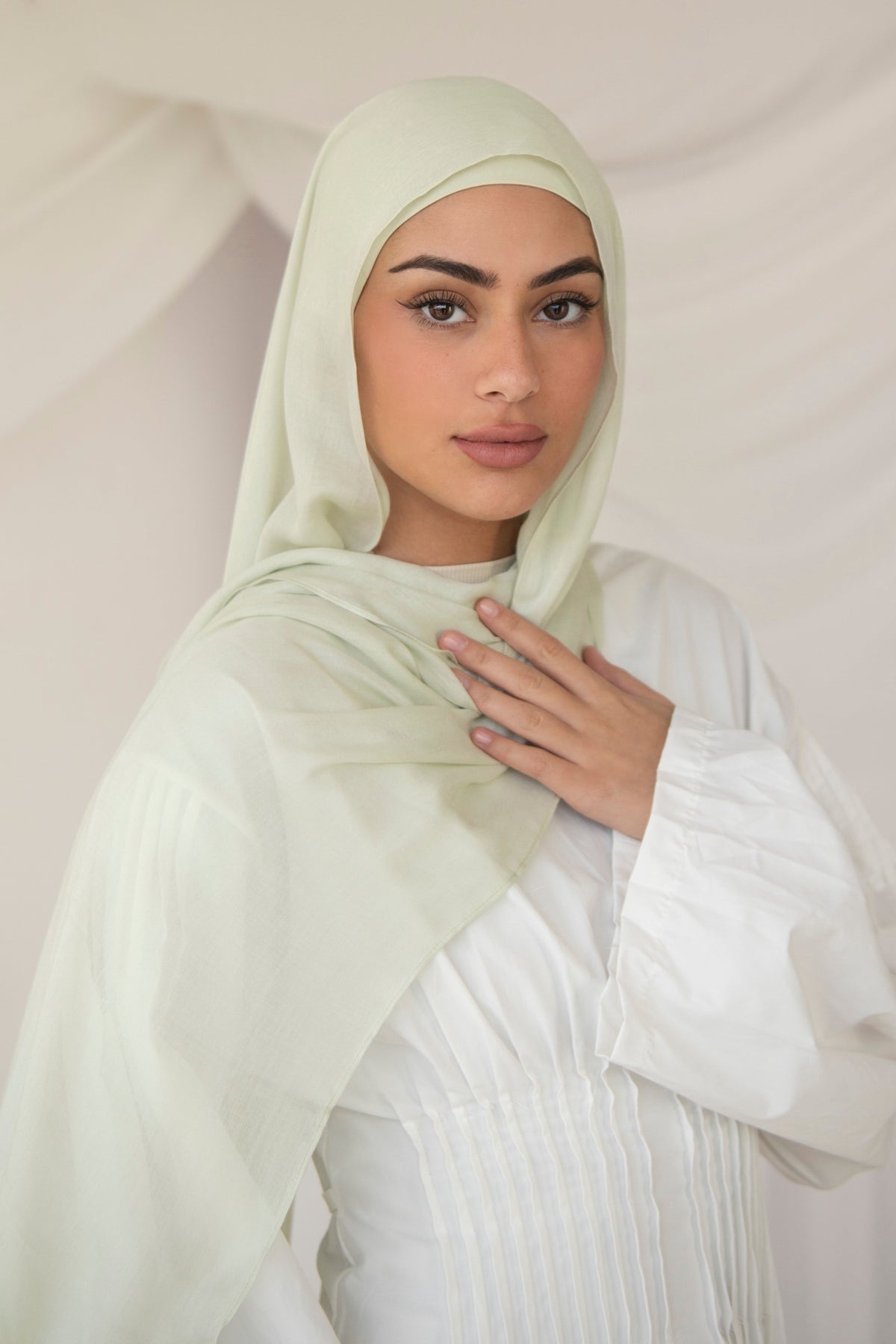 Introducing our buttery feel, light weight modal hijab in pastel green a soft, refreshing hue, Inspired by the gentle tones of nature and spring mornings it pairs beautifully with beige, ivory for a timeless, sophisticated touch.