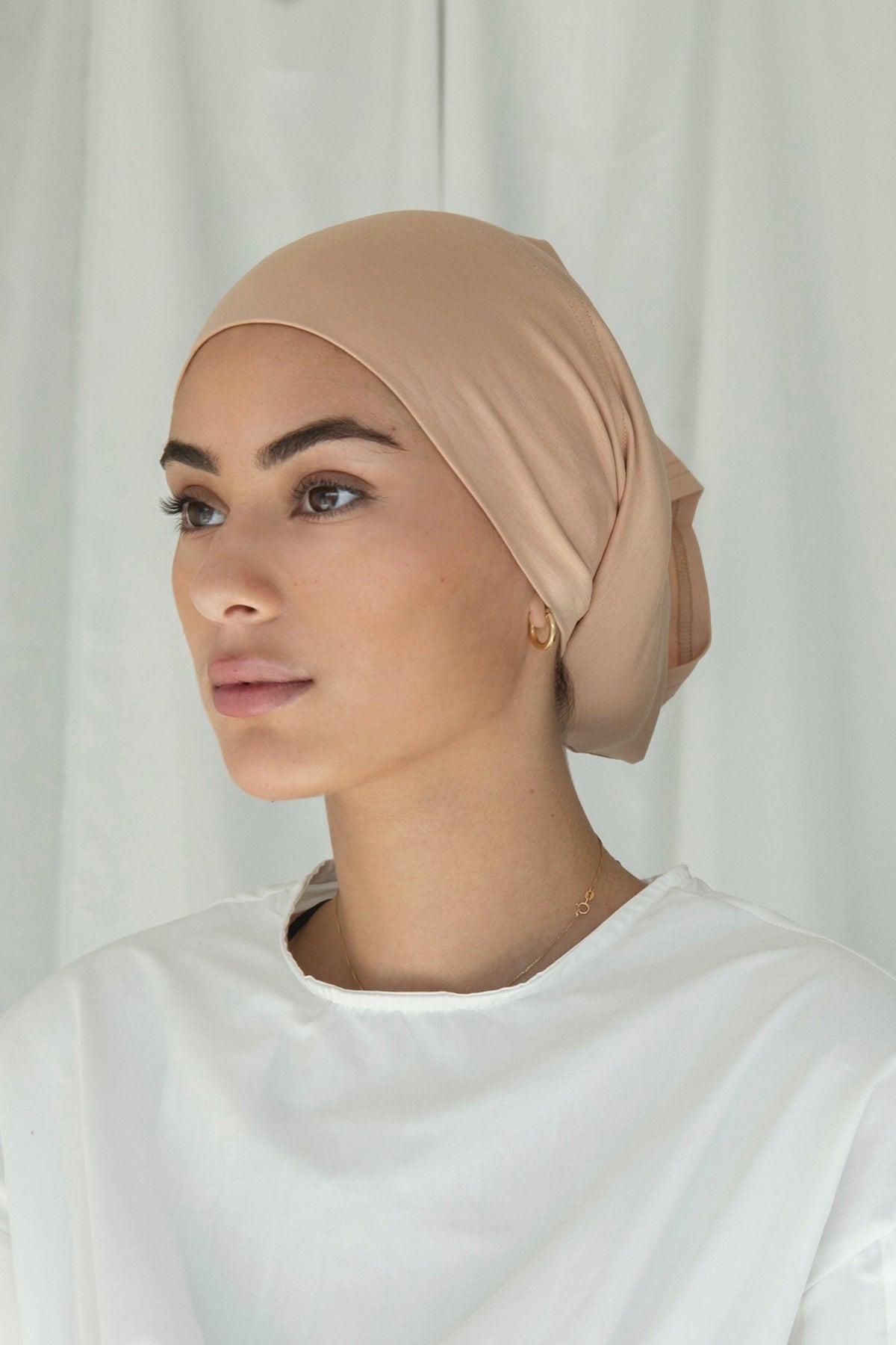 Introducing our luxurious cotton undercaps. Made from soft, cooling cotton fabric, the perfect complement to your hijab, match it with our peachy nude modal for a perfect look.