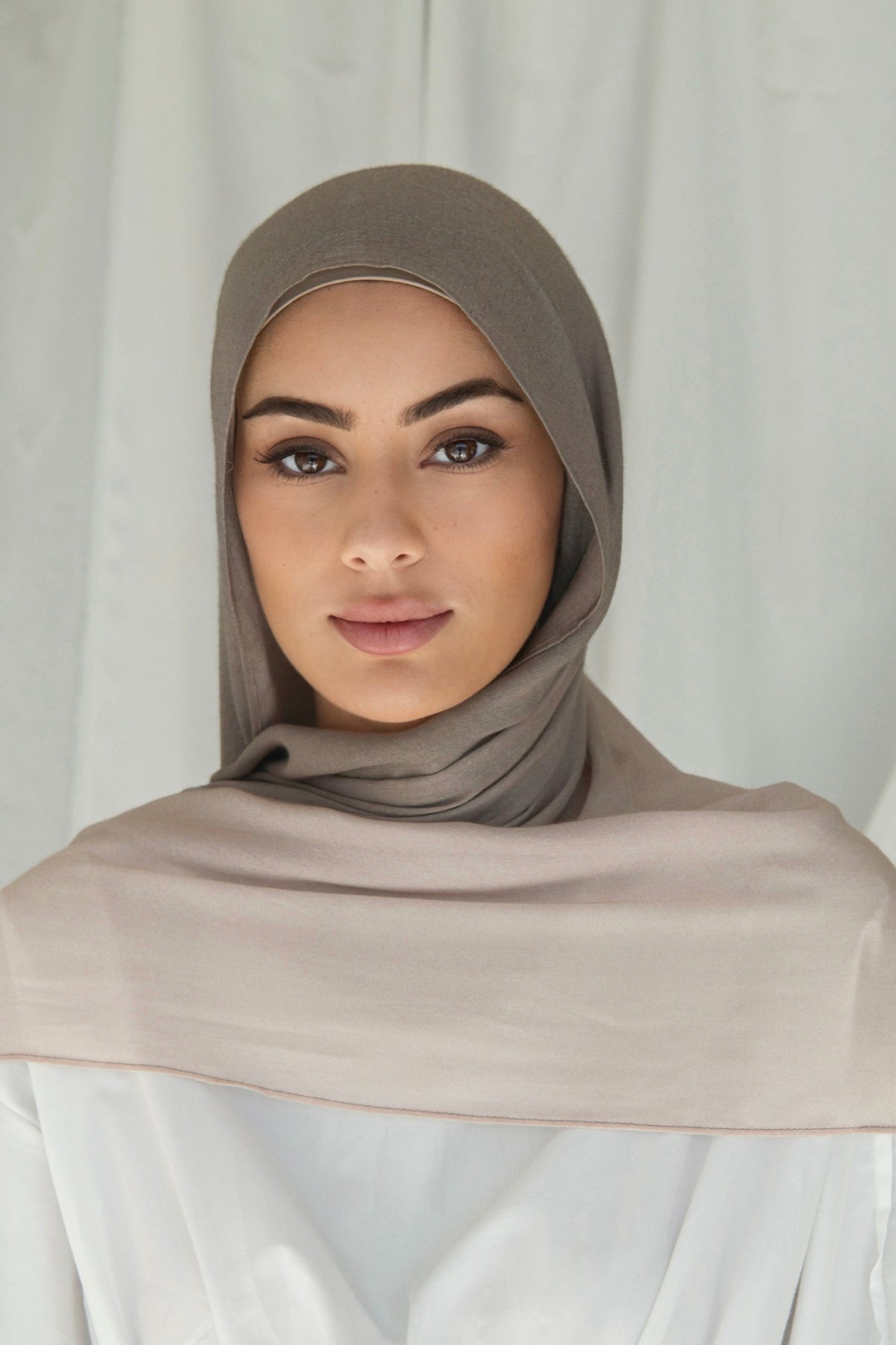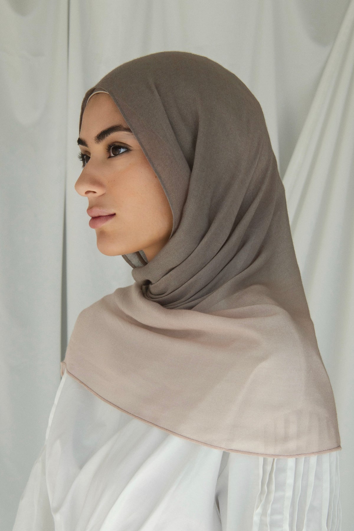 Introducing our buttery feel, light weight modal hijab in sand ombre print a unique addition to your hijab collection, this hijab blends delicate shades of beige and light brown in a smooth ombre gradient.